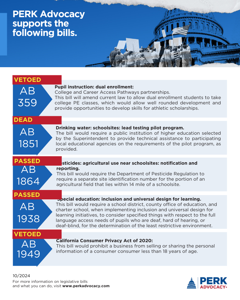 Moving into our 5th year, we will continue to lobby for legislation that positively impacts our children’s health and their right to an education. Our main goal is to promote and support legislators/legislation that will promote a healthy and educated California for all.